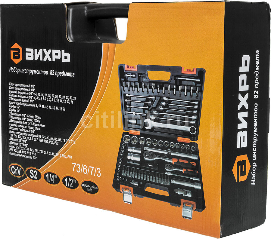 Набор инструмента универсальный 82 предмета 1/2х1/4 CrV Вихрь