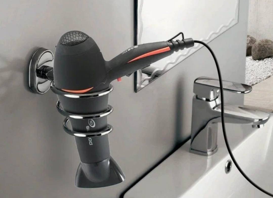 ? Эргономичный дизайн — держатель удобно крепится на стену, позволяя вам легко и быстро достать фен, когда это необходимо.