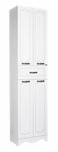 Напольный пенал имеет один выдвижной ящик и два отсека – над ящиком и под ним, отсеки открываются с помощью дверей и разделены полкой.