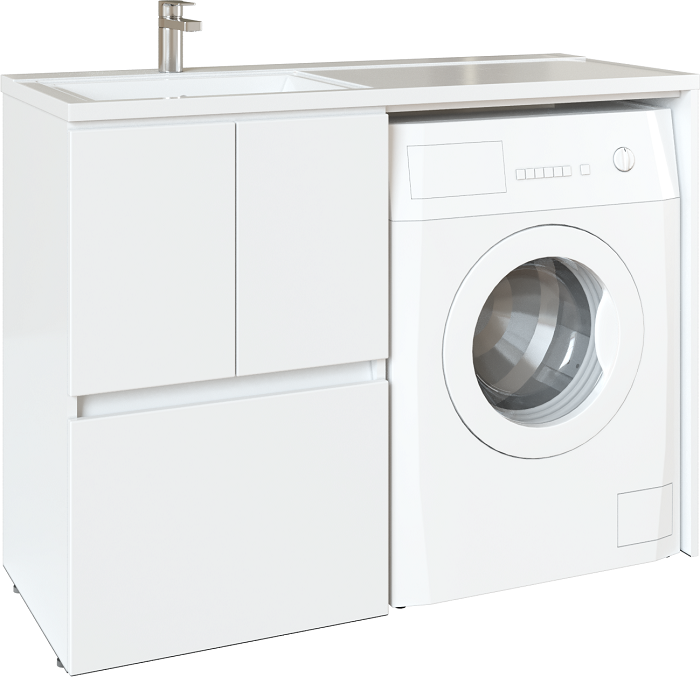 Тумба поставляется в частично собранном виде. Пространство под стиральную машину разобрано и устанавливается по желанию справа или слева.