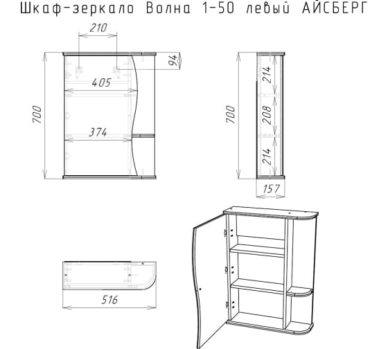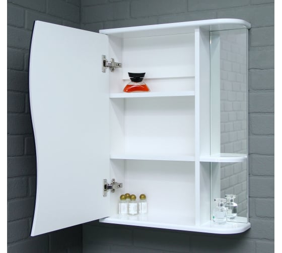Шкаф – зеркало волна 2-50, 2-55, 2-60 в левом и правом исполнении, имеет по бокам полки.