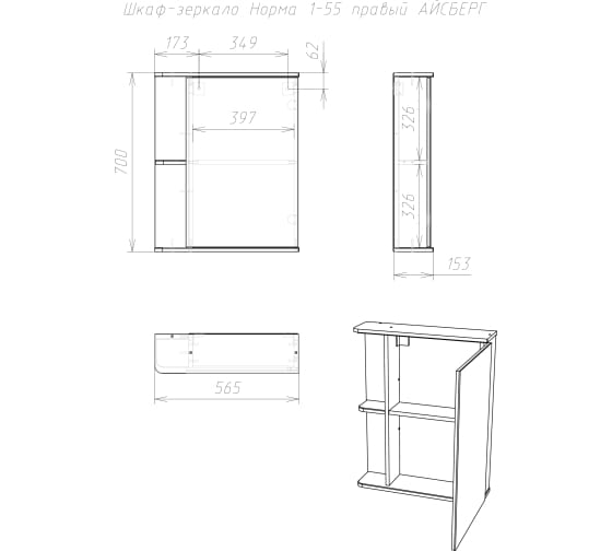 Зеркало-шкаф Норма 1-55 правый АЙСБЕРГ