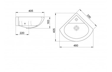 Умывальник "Радиан" угловой 40х40 см, белый с отверстием Santeri