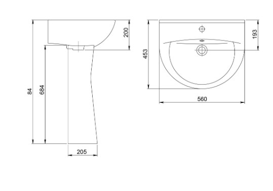 Умывальник " Виктория "Умывальник на пьедестале Виктория с отверстием джля смесителя. Цвет белый.