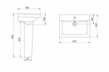 Умывальник "Орион" 56 см, белый с отверстием, с пьедесталом Santeri