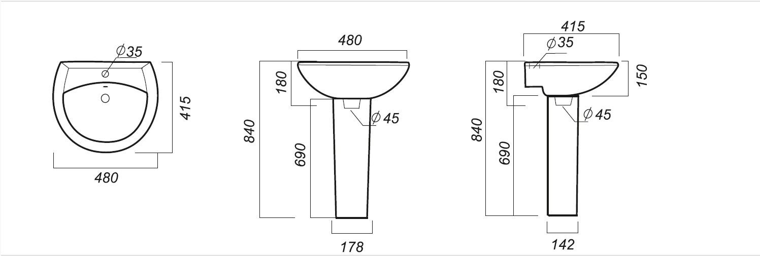 Умывальник "Аттика" 40х48 см, белый с отвертсием Sanita (ФС6)