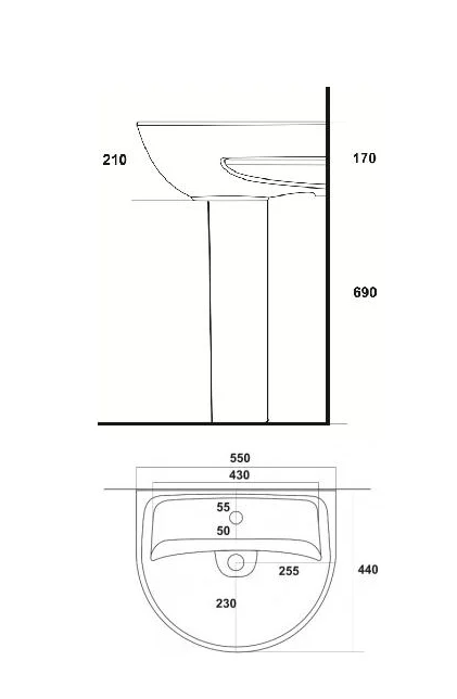 Умывальник "Эталон" 43х55 см, белый с отверстием Sanita (ФС6)