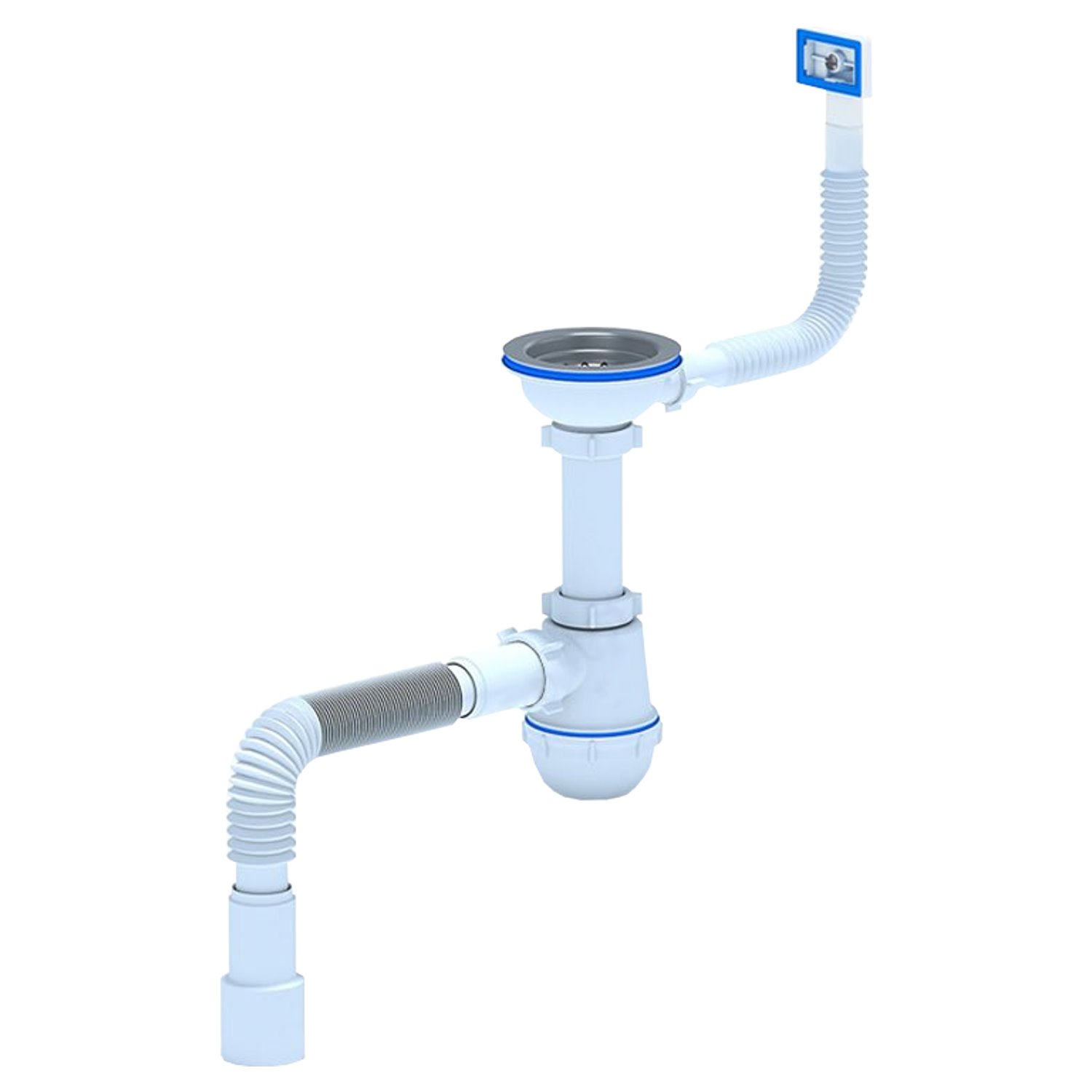 Сифон для кухонных моек с диаметром сливного отверстия 90мм, бутылочного типа с увеличенным корпусом. С разборным выпуском и нержавеющей решеткой, с гибким прямоугольным переливом для моек из нержавеющей стали. Гофра 40*40/50Характеристики