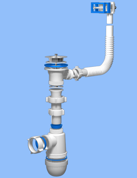 C0140 Сифон Ани 1 1/2"*40 с переливом мойкиГабаритные размеры без трубы 290*126*73