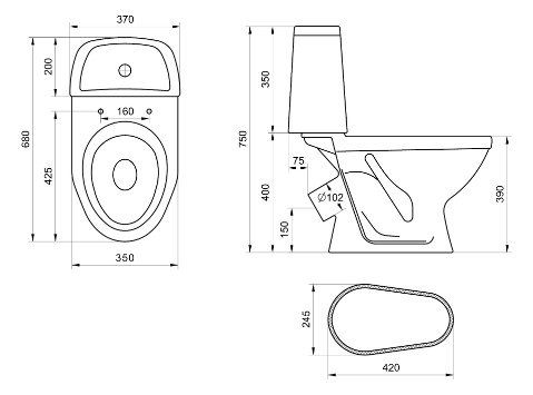 Унитаз-компакт "Соната" с арматурой и сиденьем (косой выпуск) Santeri