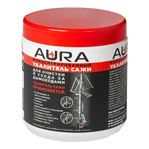Смолистые отложения в дымоходе мешает нормальной работе отопительного прибора, снижает его эффективность, ускоряет износ, провоцирует коррозию деталей и даже может послужить причиной пожара. Удалитель сажи AURA состоит из смеси специальных кристаллов. Одни ее компоненты в процессе горения дров действуют как катализаторы, превращая содержащиеся в древесине сажи в горючие газы, другие при высокой температуре выделяют газы, которые вступают в реакцию со смолистыми отложениями и разрушают их структуру. Вследствие этого испаряется влага – основной компонент, обуславливающий твердость смолистого налета. Остаются лишь хрупкие остатки сажи, которые осыпаются, термически расщепляются и сгорают.Удалителя сажи AURA 200 грамм хватает на 5 циклов. В упаковке 5 пакетов