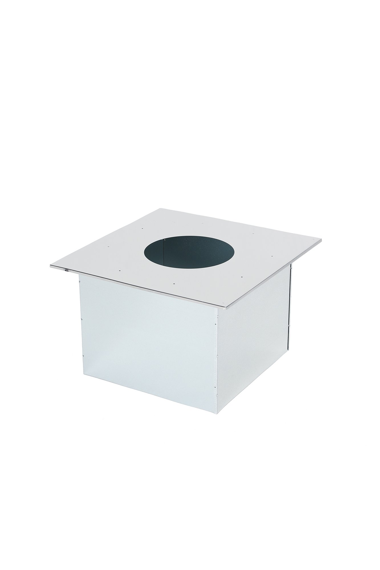 Проход перекрытия универсальный ППУ используют для прохода дымовой трубы через деревянные конструкции. Его выбирают исходя из наружного диаметра трубы.Перед установкой этот узел прохода через потолок или стену необходимо подготовить все поверхности, которые будут соприкасаться с древесиной обшивки потолка, и все внутренние поверхности проходного короба выкладывают теплоизоляцией.
