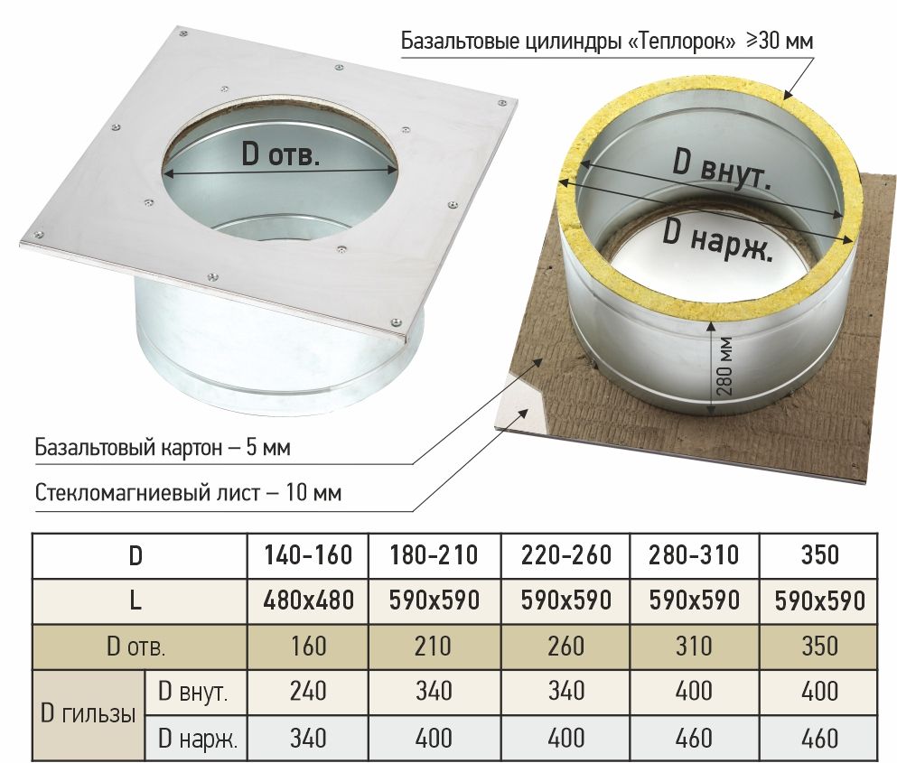 Проход перекрытия универсальный утепленный 590 х 590 d 280 х 310 ППУ-У