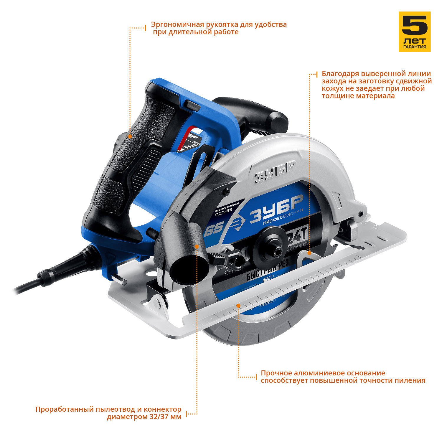Пила циркулярная ПДП-65 (1600 Вт, диск 190 мм, 5000 об/мин) Профессионал ЗУБР