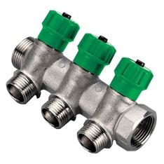 Коллектор регулировочный 1 x 3/4 3 выхода под евроконусКоллекторы с регулирующими вентилями используются в системах водоснабжения и водяного отопления для распределения, регулирования или перекрытия рабочей среды от основного трубопровода.