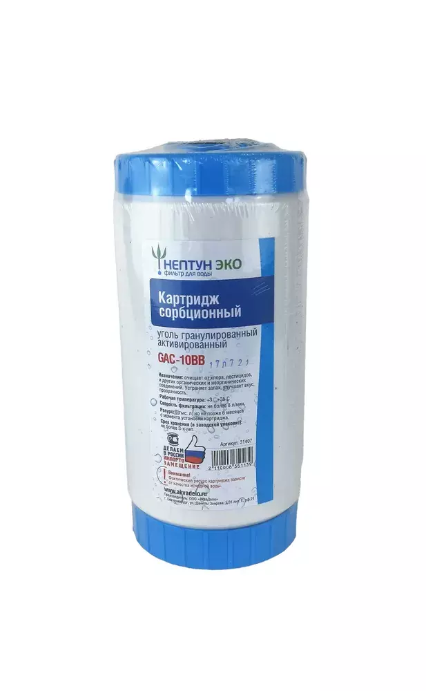 Картридж BB10 GAC (УГА) мкм, НептунВы хотите пить и использовать чистую воду без загрязнений и неприятных привкусов? Тогда вам нужен сменный угольный картридж — надежный и эффективный элемент системы очистки воды. Он способен удалять хлор, органические вещества и микроорганизмы, обеспечивая вам высокое качество воды для здоровья и комфорта.
