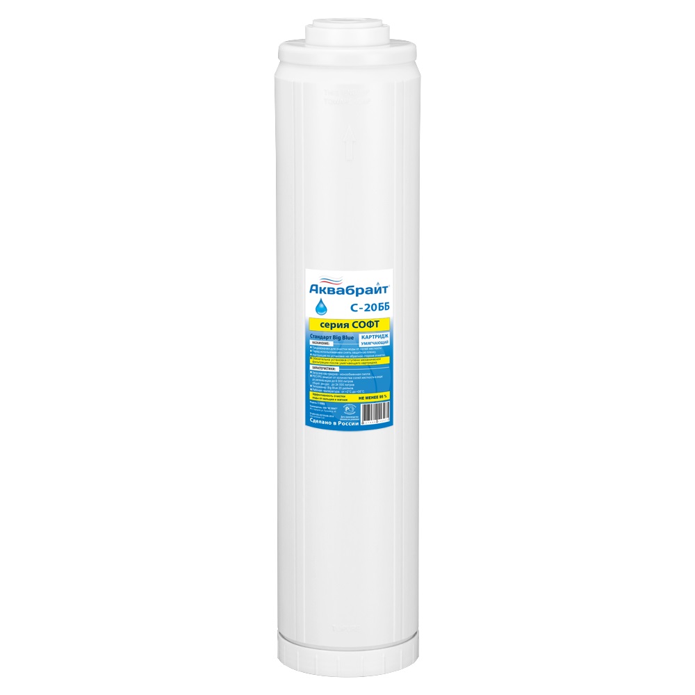Картридж АКВАБРАЙТ C-20 ББ с наполнителем из ионообменной смолы. Возможна регенерация с помощью пищевой поваренной соли.Назначение: