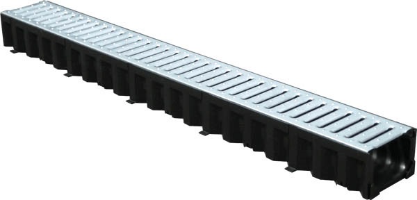 Лоток водоотводный с оцинкованной решеткой КВ 125 ш х 80 в х 1000 д. DN100 (Top) GidroGroup