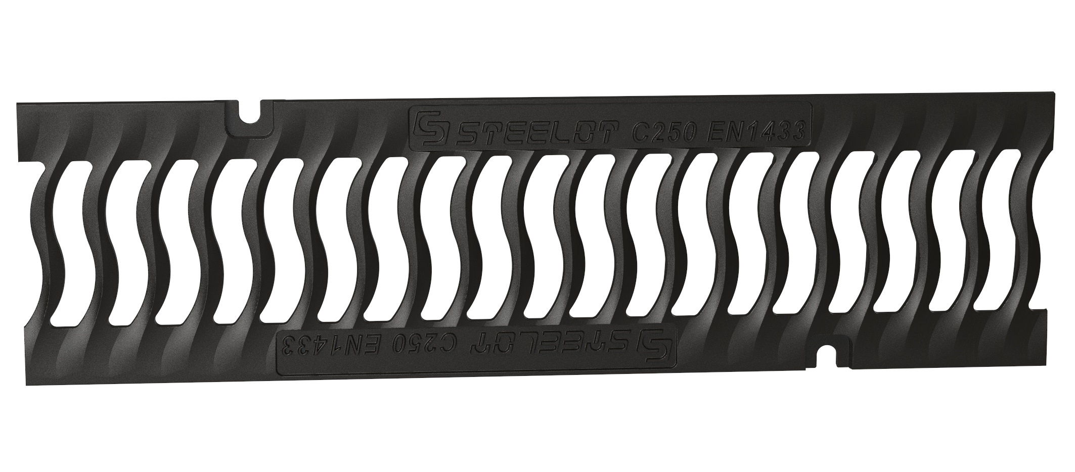Решетка водоприемная чугунная волна серии SteeStart DN100 совместима с водоотводными лотками серии SteeStart DN100 Н55/80/120/180. Класс нагрузки С250. Оптимальное решение для благоустройства придомовомой территории, спортивных сооружений, паркингов для легкового и легкового коммерческого транспорта, дорог с малой интенсивностью движения где не предусмотрен проезд грузового транспорта и строительной спецтехники."