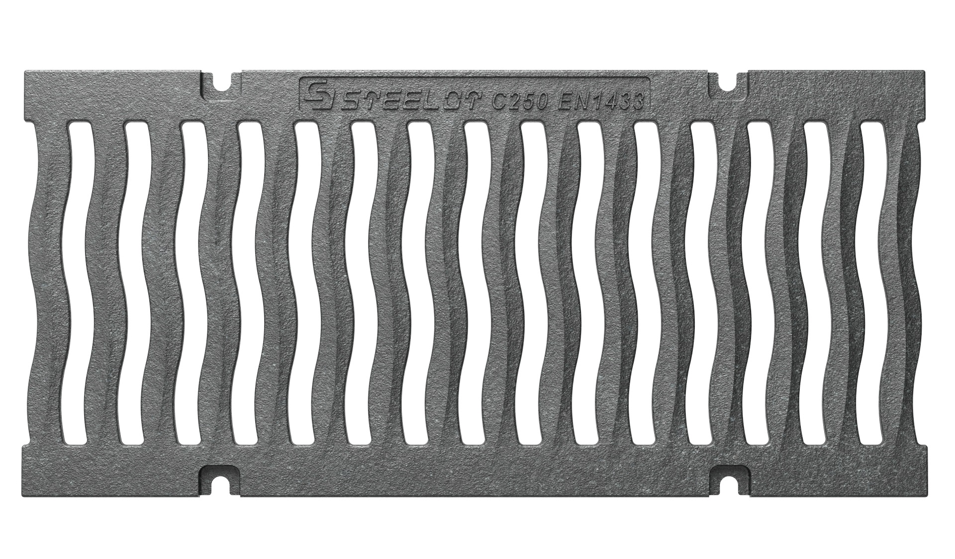 Решетка водоприемная чугунная волна серии SteeStart DN200 совместима с водоотводными лотками серии SteeStart DN200 Н200. Класс нагрузки С250. Оптимальное решение для благоустройства придомовомой территории, спортивных сооружений, паркингов для легкового и легкового коммерческого транспорта, дорог с малой интенсивностью движения где не предусмотрен проезд грузового транспорта и строительной спецтехники."
