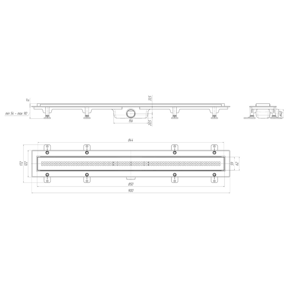 Трап-лоток 40*62*850, сухой затвор, пластик, решетка нержавейка глянец "Риф" TLQ1285G Ани