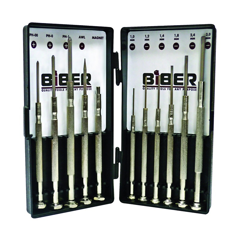 Набор отверток для точных работ 11шт Biber 85566 тов-159181 подойдет для часовых и ювелирных работ, а также работ с электроникой. Комплект поставляется в удобном кейсе. Каждый инструмент располагается на отдельной позиции с указанием типа и размера.Отзывы