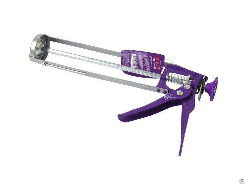 Усиленный скелетный пистолет для герметика Blast No-drop 591003 прост и удобен в использовании.Его основное назначение - нанесение герметика на поверхность при герметизации различных швов и отверстий.