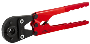 Пресс-инструмент малогабаритный ручной VALTEC c компл. насадок 16-20 (тип ТН)Малогабаритные пресс-клещи VALTEC обеспечивают ручное обжатие фитингов при монтаже металлополимерных, пластиковых труб диаметром 16, 20 мм. Профиль используемых насадок – ТН. Отсутствие телескопических рукояток требует больших усилий (расчетное значение – 150 Н), чем при работе со стандартным пресс-инструментом. Усилие обжатия гильзы – 10,5 кН. Средний полный ресурс – 5000, наработка на отказ – 2500 циклов. Масса пресс-клещей без насадок – 2,49 кг. Рукоятки инструмента оснащены ПВХ-покрытием. Осевые эксцентрики позволяют производить настройку клещей при появлении избыточных люфтов.