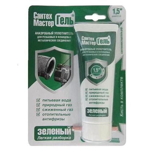 Гель-герметик для резьбы "Сантехмастер" тюбик на блистере ЗЕЛЕНЫЙ 60гр. резьба до 1.5" (Россия)