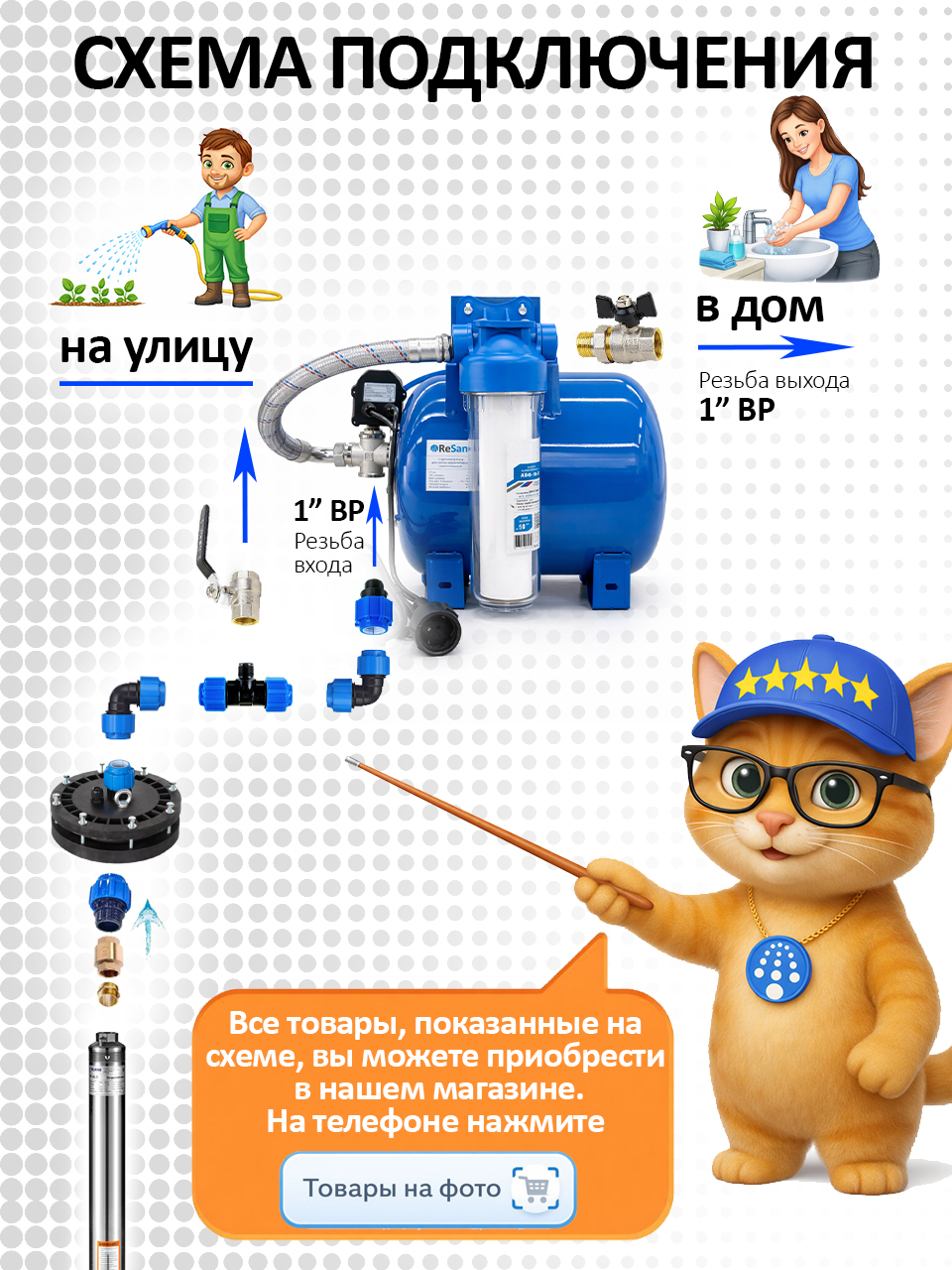 • магистральный фильтр с картриджем,