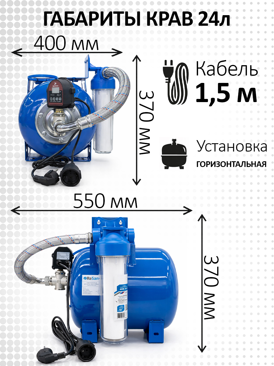 Комплексное решение автоматизации водоснабжения (КРАВ) — это готовый к установке узел для автоматического управления насосом и защиты системы водоснабжения в частном доме, на даче или хозяйственных объектах.Гидроаккумулятор в сборе с автоматикой КРАВ 24 л объединяет электронное реле давления РДЭ, гидробак и защитные элементы в одном корпусе, обеспечивая стабильное давление воды и надёжную работу насосного оборудования.