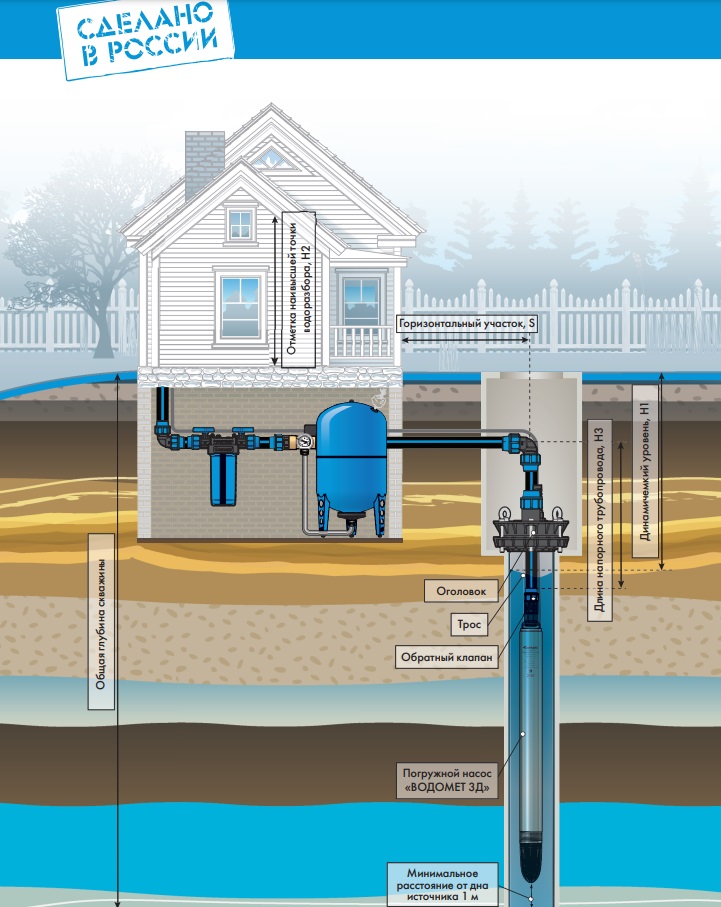 Насос скважинный погружной центробежный ВОДОМЕТ 55/90 (98 мм, 220В, 1200Вт, 55 л/мин, 90м) кабель 50 м. ДЖИЛЕКС