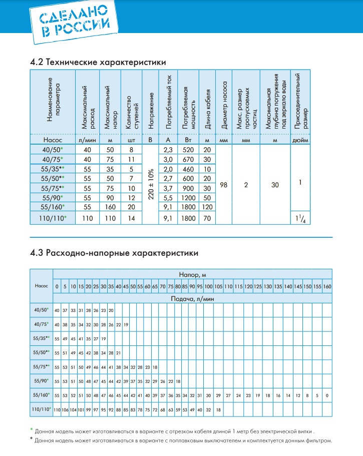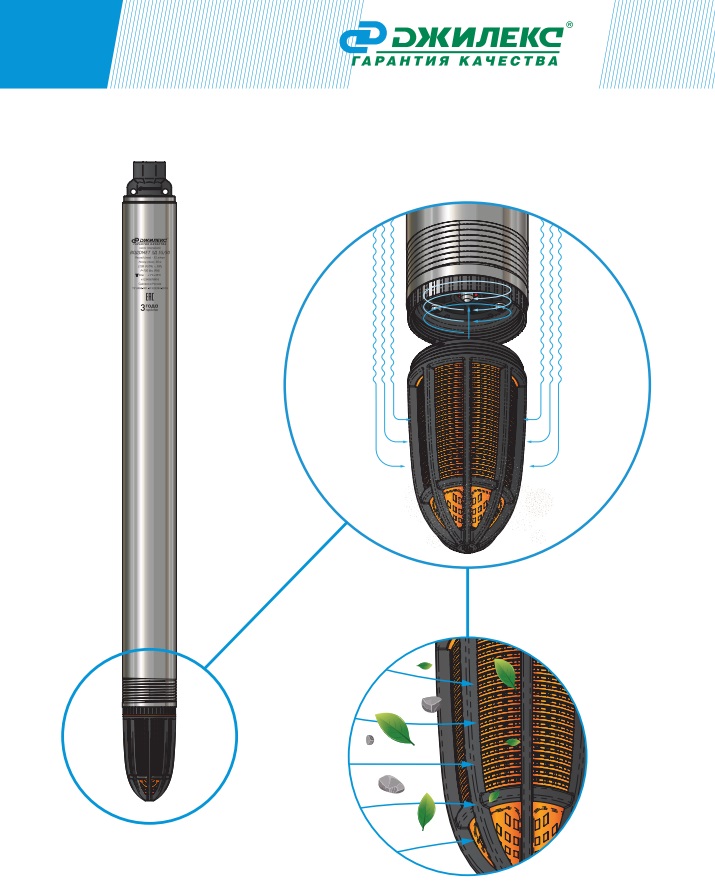 ? Скважинный насос обладает высокой износостойкостью и способен перекачивать воду с твердыми частицами размером до 2 мм в диаметре, включая воду с большим содержанием песка (до 2 кг песка на кубический метр воды).