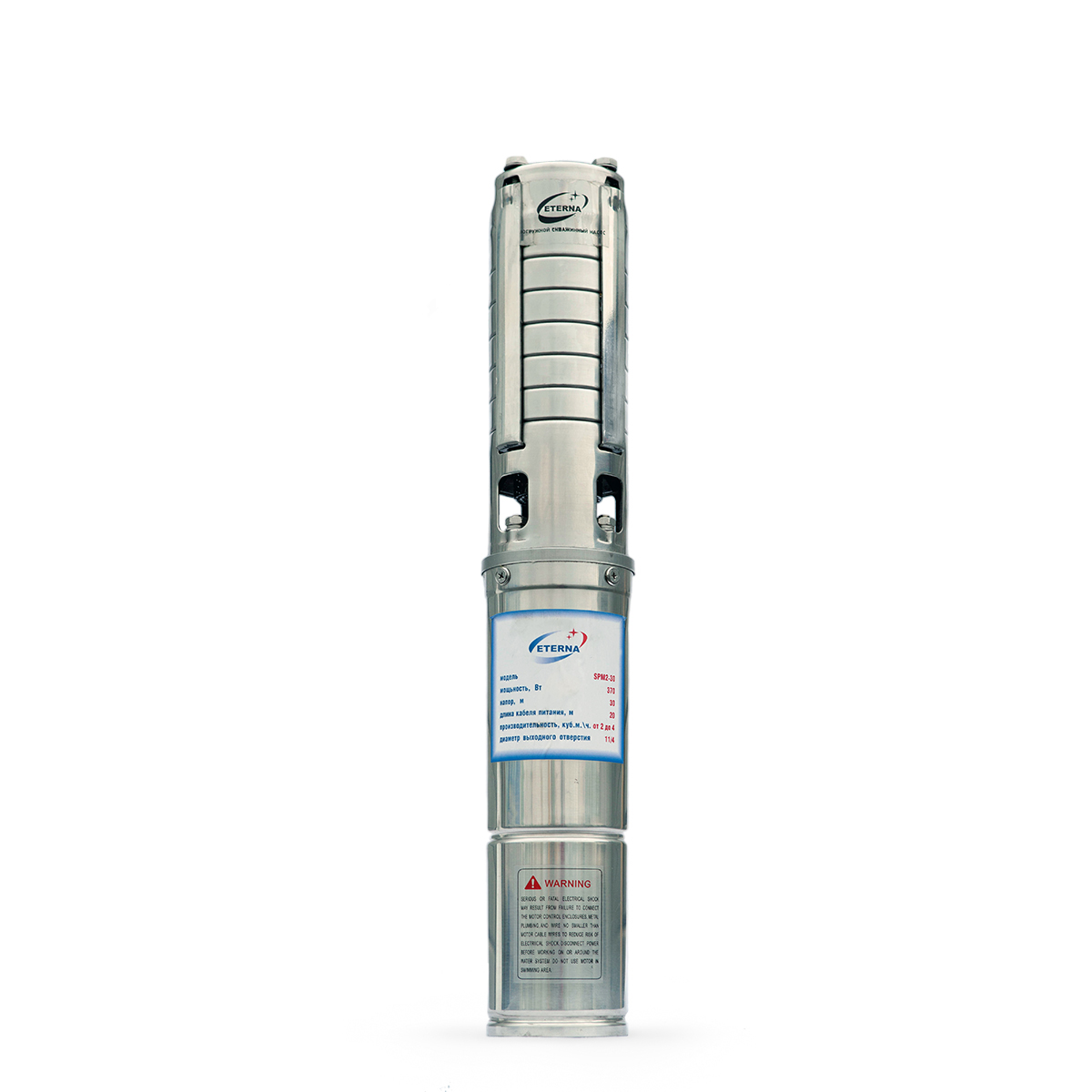 Насос погружной центр. с плав. кол. нерж SPM2-30 (4", 220В, 370ВТ, 4000л/ч, 30м) кабель 20 м. ETERNA идеально подходит для перекачивания воды из бытовых колодцев, различных скважин, естественных и искусственных водоемов и полива.Устройство рабочего колеса позволяет перекачивать воду с большим содержанием песка, что очень важно при использовании насоса ENTERNA для перекачивания воды в искусственных водоемах.
