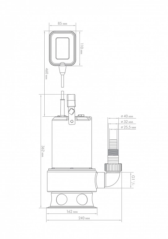 ?Защита от сухого хода: Встроенный поплавковый выключатель автоматически отключает устройство, когда уровень жидкости становится слишком низким, предотвращая перегрев и поломку.