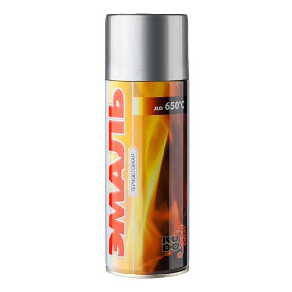 Эмаль аэрозольная термостойкая серебристая 0,52л КУДО KU-5001