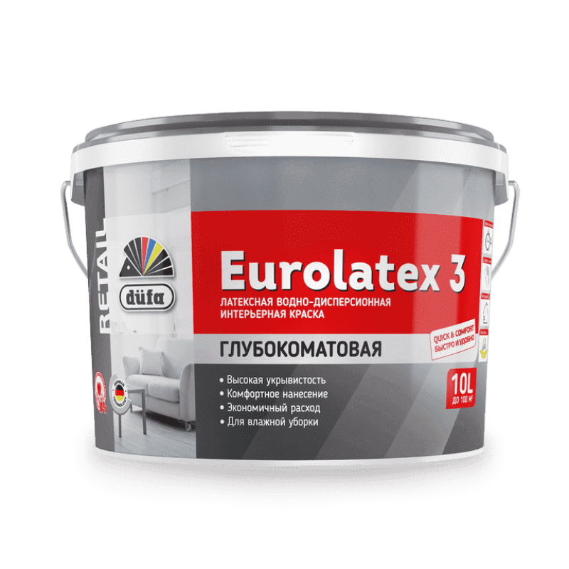 Водно-дисперсионная краска с хорошей укрывистостью для покрытий по бетону, штукатурке, кирпичной кладке, волокнистому цементу, не содержащему асбест, а также для перекрашивания исправных, старых дисперсионных покрытий. Подходит для окраски любых видов прочных, надежно приклеенных влагостойкими клеями обоев на бумажной, флисовой и флисово-виниловой основе. Также можно окрашивать качественно подготовленную поверхность стеклообоев, малярного флиса, стеклохолста различной плотности (поверхность следует загрунтовать грунт-краской или пропитать обойным клеем для формирования равномерно впитывающего малопористого основания).Отзывы