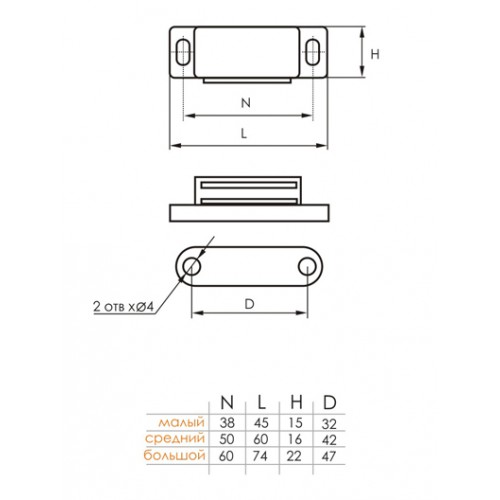Магнит мебельный 74-15мм коричневый SOLLER
