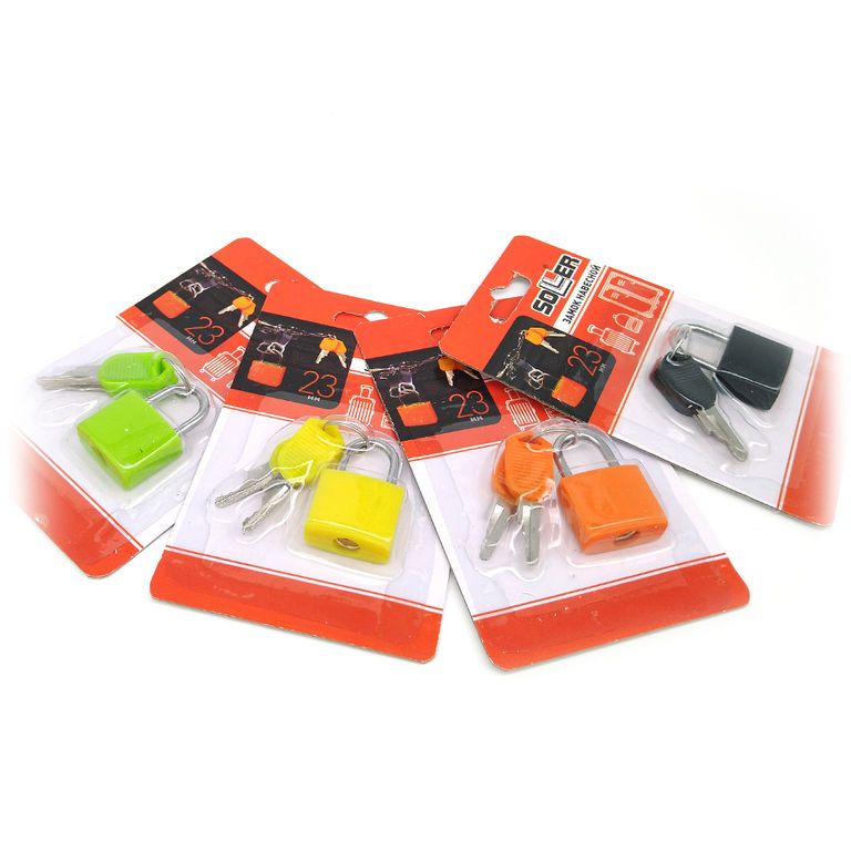 Замок навесной 23мм латунь, ПВХ, цвет в ассортименте SOLLER