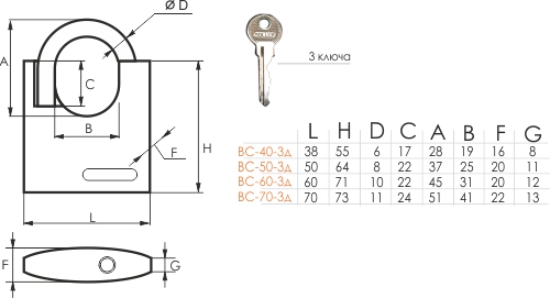 Замок навесной защищённая дужка ВС-40-ЗД (40мм) SOLLER