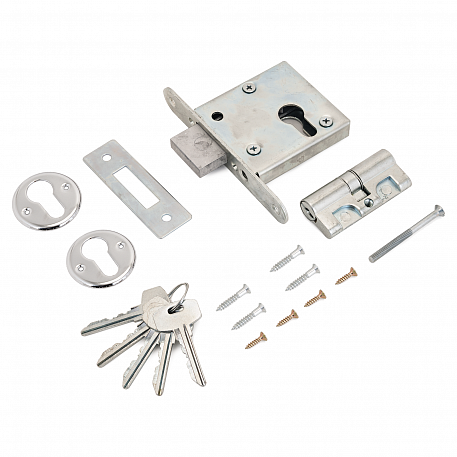 Замок врезной цилиндровый.Предназначен для установки в деревянные двери до 50мм.