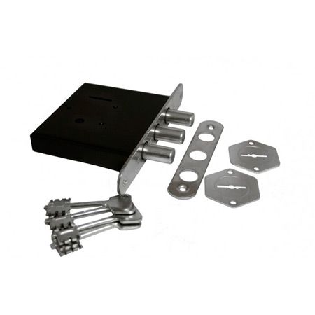 Замок врезной сувальдный для металлических дверей. Засов из трех цилиндрических ригелей диаметром 16 мм, с максимальным вылетом 30 мм. Удаление ключевого отверстия 77 мм. Габариты замка - 114х120х23мм. Комплектация - 4 ключа, ответная планка, накладка и поворотная ручка.Отзывы