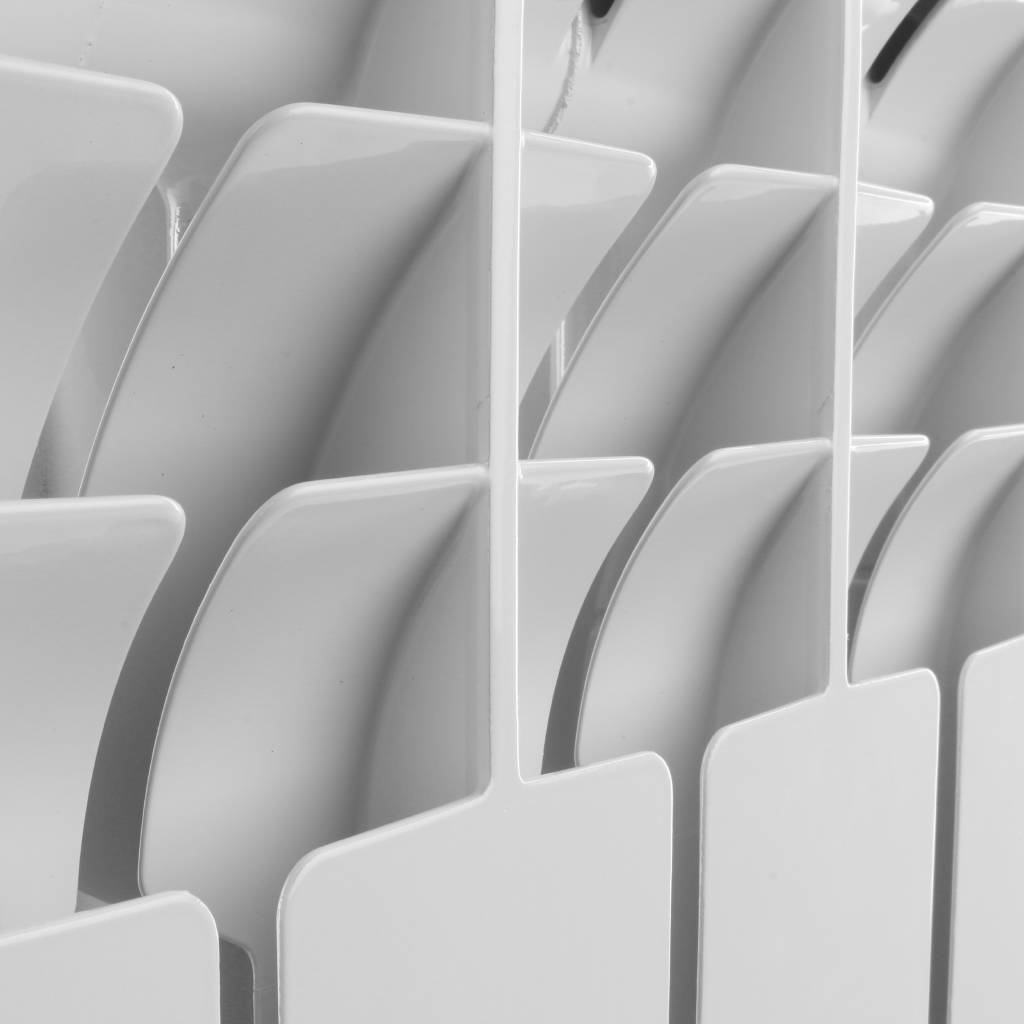 Биметаллические радиаторы повышенной мощности, могут эксплуатироваться как в центральных так и в индивидуальных отопительных системах, в условиях использования агрессивных сред. В качестве хладоносителя допустимо применение воды и незамерзающей жидкости с водородным показателем (pH) от 6,5 до 9. Коллектор биметаллических отопителей, полностью изготовленный из коррозиестойкой стали, является сваренной конструкцией, состоящей из продольных и поперечных трубчатых элементов, которые затем заполняются алюминиевым сплавом под высоким давлением. Этот инновационный подход позволяет создавать изделия с коэффициентом теплопроводности, превышающим величину, характерную для радиаторов, полностью изготовленных из алюминия.