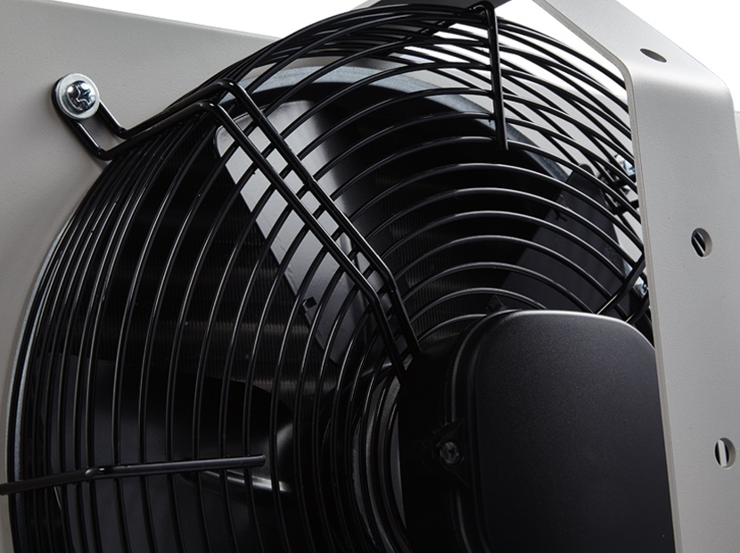 Осевой вентилятор диаметром 330 мм. создает воздушный поток длиной 5 метров и обеспечивает максимальную производительность до 1600 м?/ч.