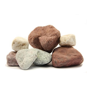 Камни для бани обвалованные микс премиум: Жадеит, Кварц, Яшма (срок службы 6,2,4 года, ведро, 15 кг)