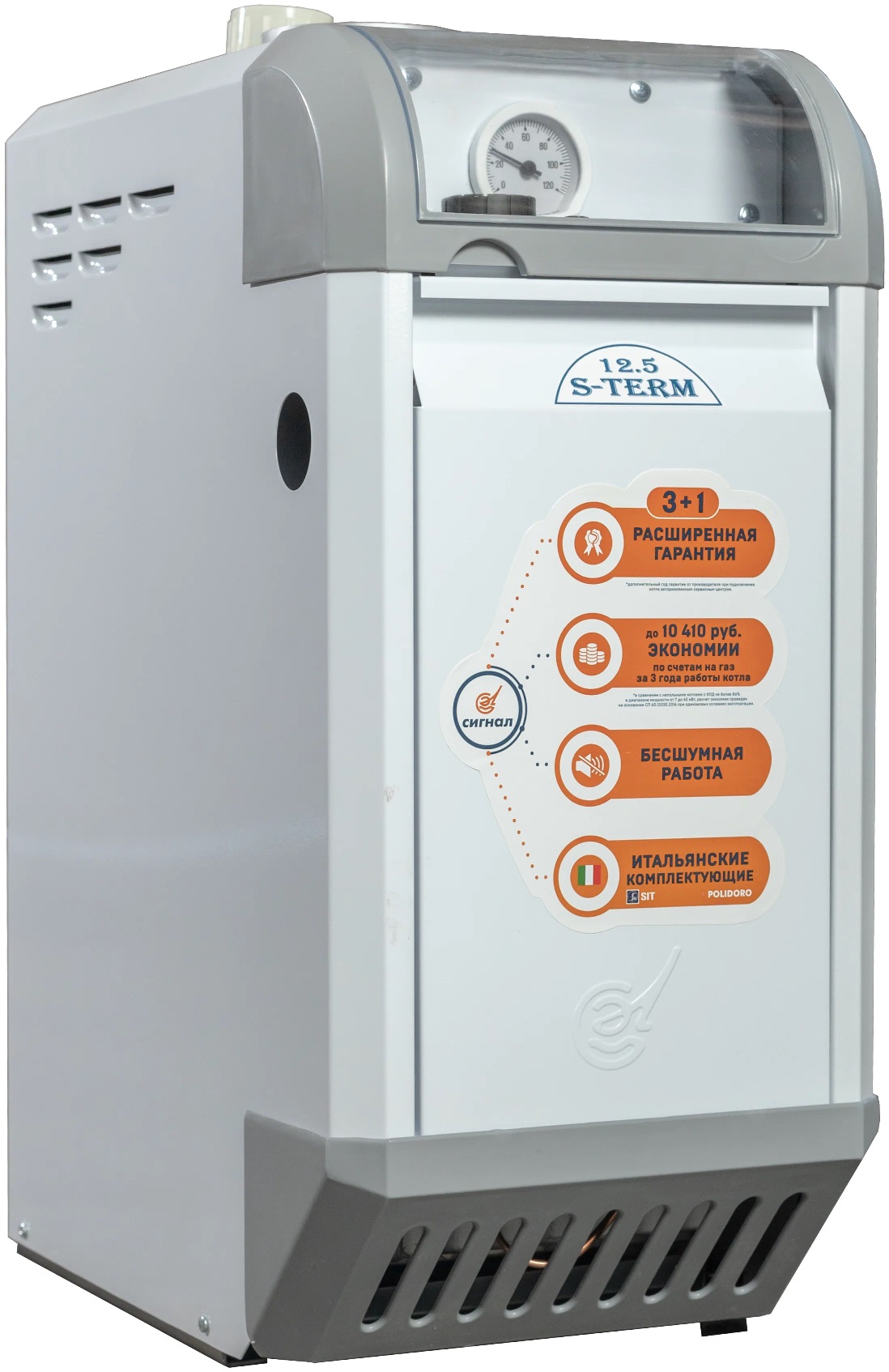 Газовые котлы Сигнал серии S-Term обеспечены датчиками для надёжной и стабильной работы: датчик контроля наличия пламени, тяги и датчик предельной температуры.