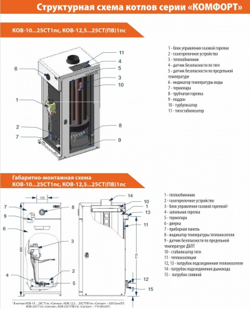 Котел газовый напольный одноконт. откр. к.с. 25 кВт Комфорт КОВ-25 СТ1пс (САБК-ТР) Сигнал