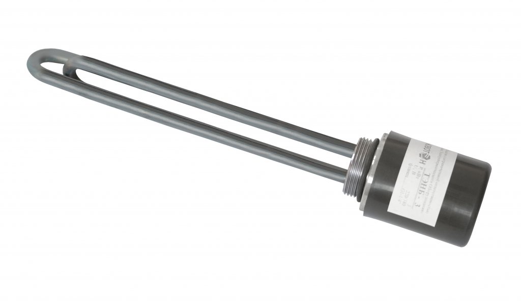 Представляет собой резьбовой фланец, на котором герметично запрессованы два трубчатых электронагревателя диаметром 10 мм