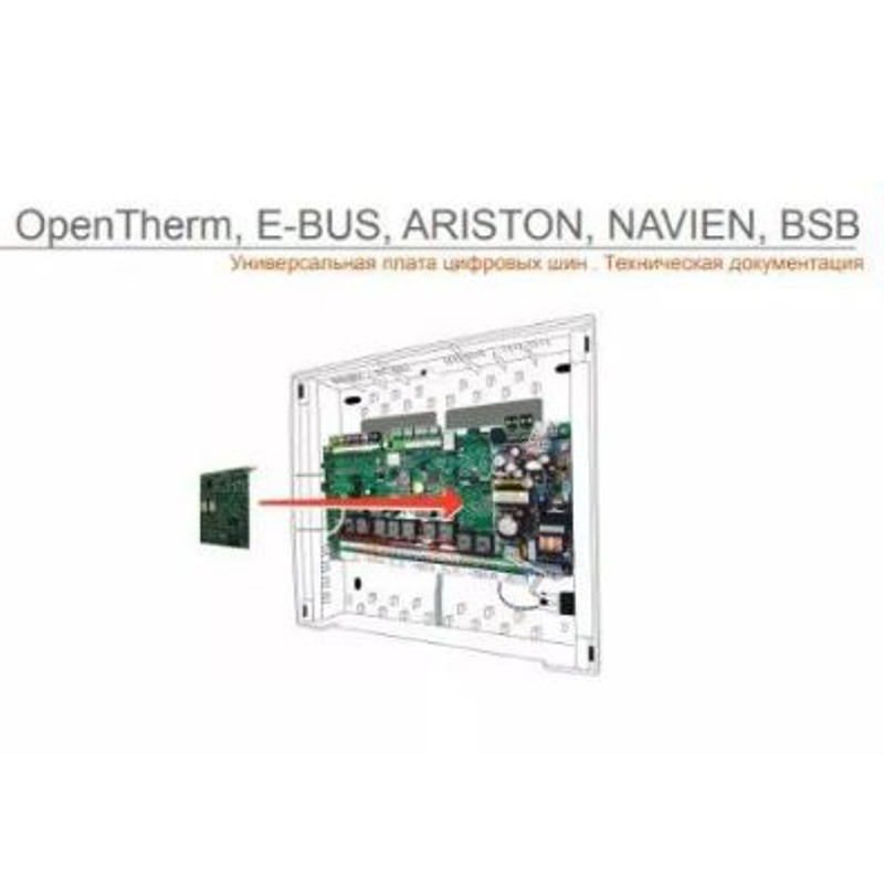 Универсальная плата цифровых шин для Climatic ZONTУниверсальная плата цифровой шины предназначена для подключения Регулятора ZONT Climatic (1.3, 1.2, 1.1) к газовым котлам по цифровой шине OpenTherm, E-Bus, BridgeNet (Ariston), Navien, BSB (Baxi).