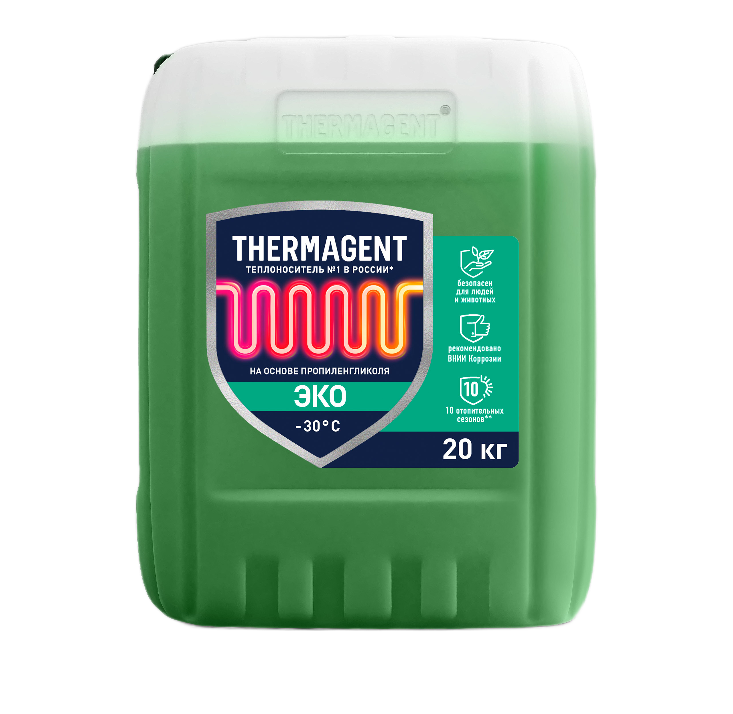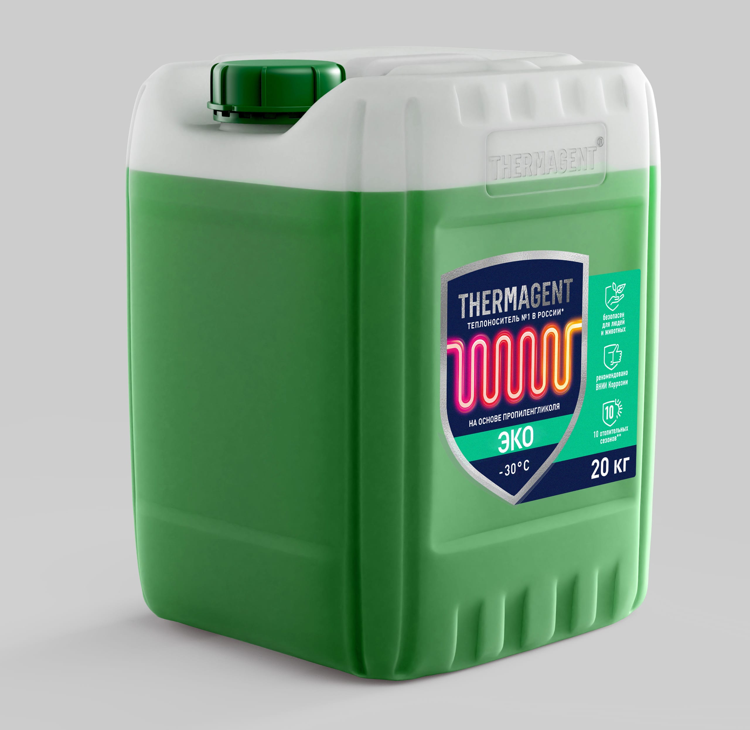 Теплоноситель Thermagent-30 ЭКО (20кг)Теплоноситель Thermagent является рабочей жидкостью, предназначенной для использования в различных системах отопления и кондиционирования. Он обеспечивает надежную работу в широком диапазоне температур, от –30°С до 106°С.